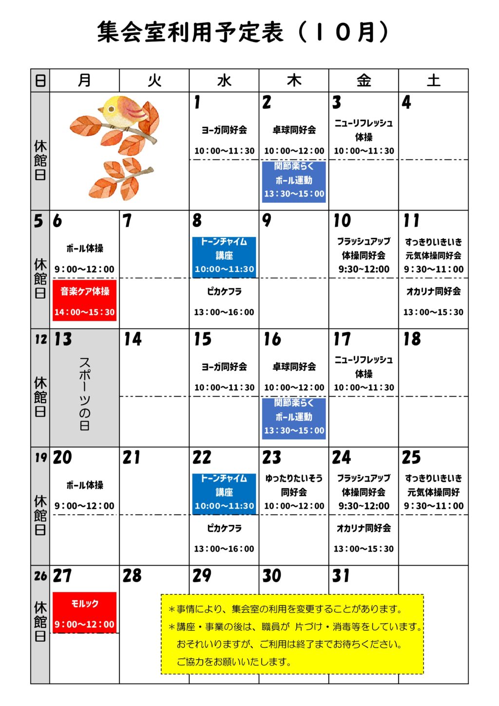 集会室や、トレッドミル(ウォーキングマシン)をご利用の際は、上履きのご用意をお願いいたします。
