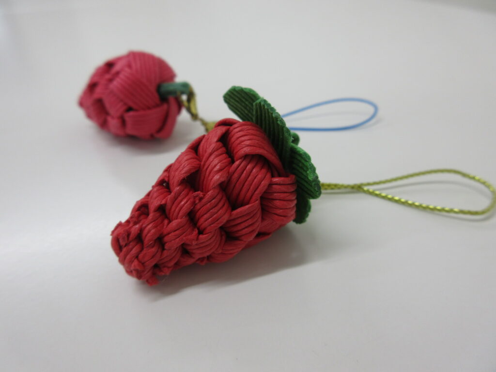 クラフトバンド いちご 投稿日時: 2026年4月28日 投稿者: 有城荘 4月27日から3グループに分かれて クラフトバンドで「いちご」を作っています。 ひもの太さや編みこむ段数によって 色々な大きさの「いちご」ができあがっていきます。 小ぶりのいちご、大きく立派な高級いちご ストラップを付けてできあがりです。