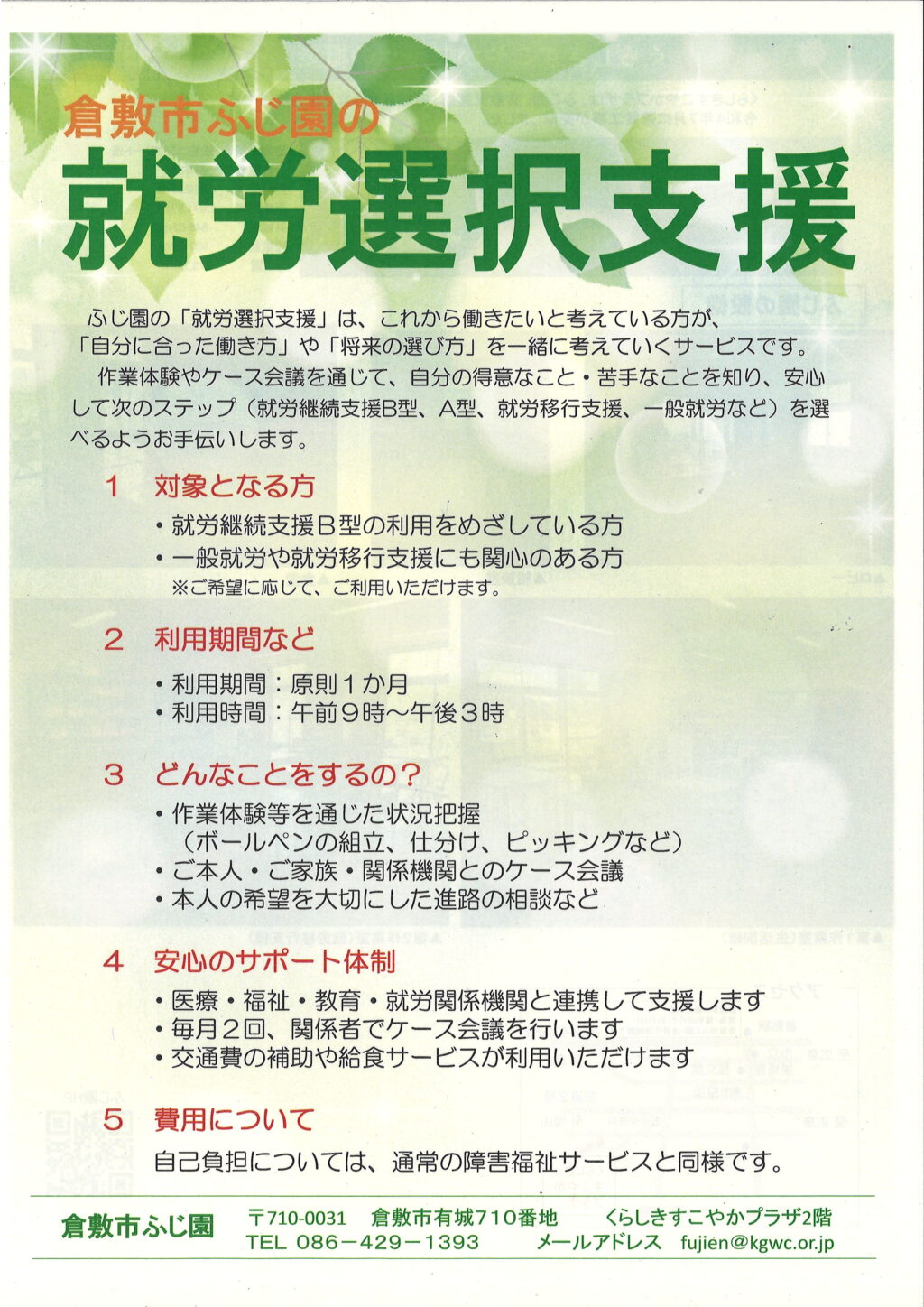 10月1日から、新たに「就労選択支援」のサービスを実施いたします。
