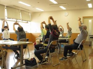 介護予防事業では、高齢者が介護を必要としない心身ともに健康で明るい生活を送れるよう、お手伝いをしています。高齢者の社会参加の促進を図るとともに、市民の介護予防活動を育成・支援するために、健康体操・健康講話等をくらしき健康福祉プラザを拠点に実施しています。また、地域へも積極的に出向いています。