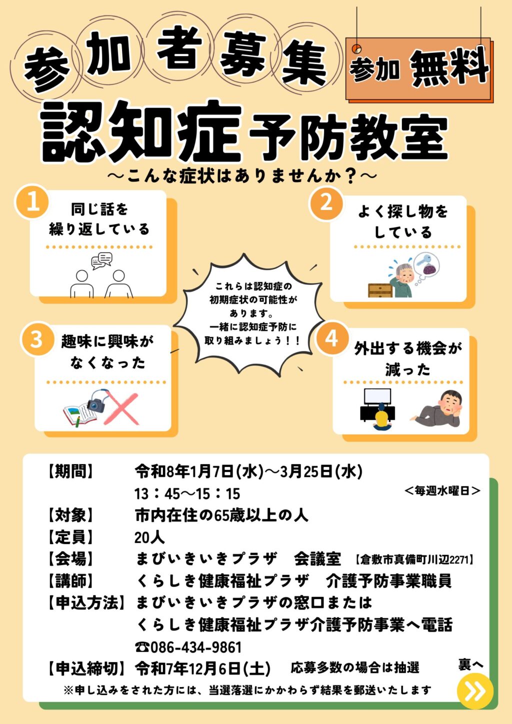 くらしき健康福祉プラザ 介護予防事業に電話(☎086-434-9861)