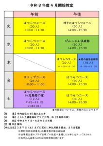 くらしき健康福祉プラザ・児島憩の家での教室ご案内