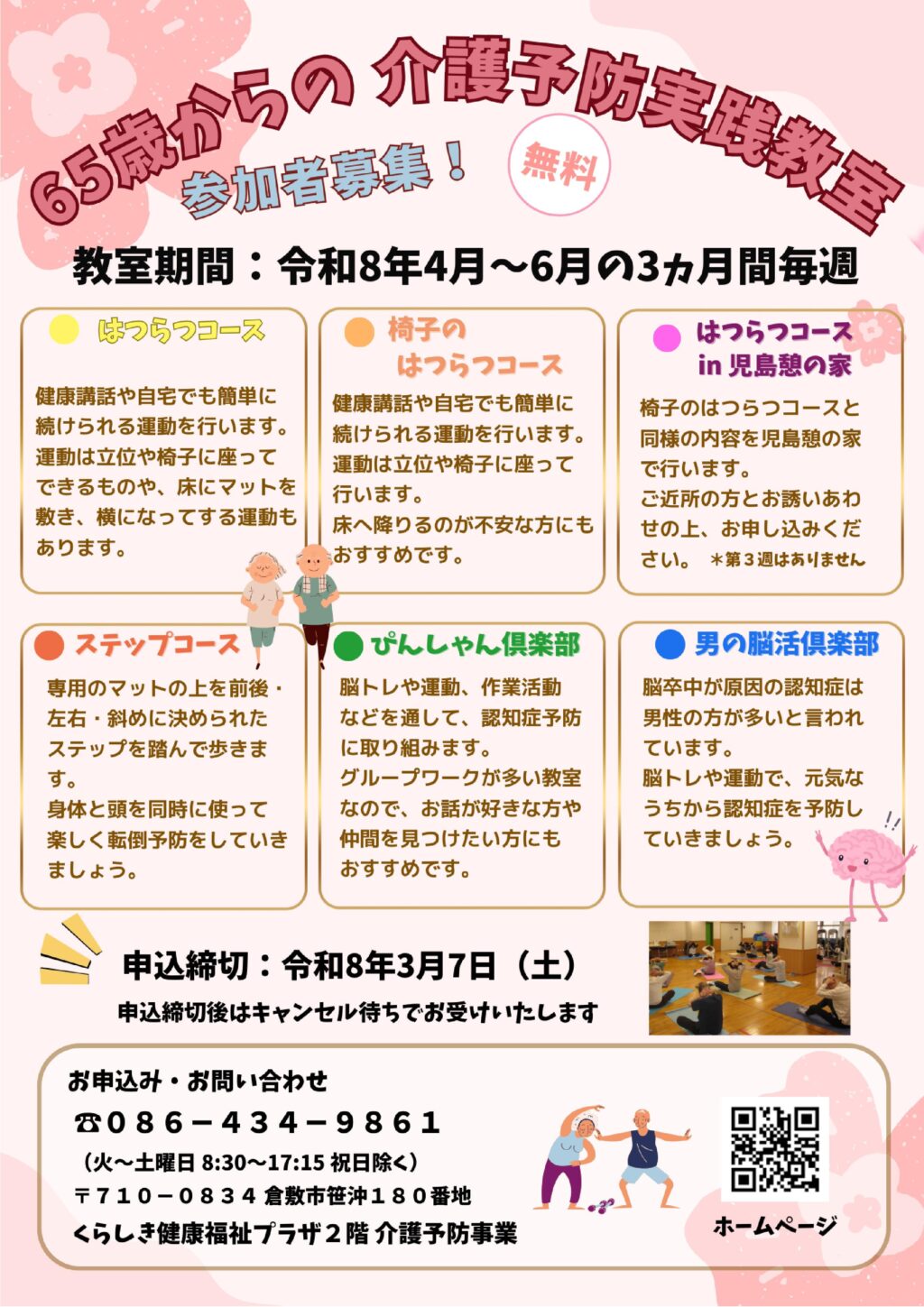 対象は倉敷市在住で65歳以上の方で、受講料は無料です。