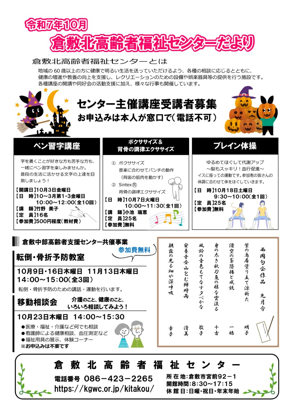 - 令和7年10月 倉敷北高齢者福祉センターだより(9月20日投稿)