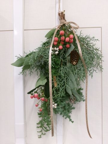 今回は束ねて飾るタイプのクリスマスリースを作りました♪