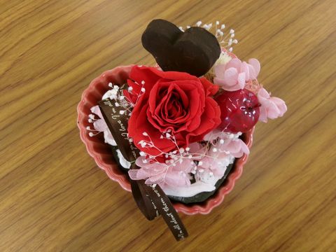 「花クラブ(1月)」 投稿日時: 2026年1月28日 投稿者: 倉敷北高齢者福祉センター令和7年度「花クラブ(1月)」を1月27日火曜日に実施しました。 今回はプリザーブドフラワーを使ってバレンタイン用のお花を作りました♪ ハート型の器に、鮮やかなプリザーブドフラワーの赤いバラと、本物そっくりの黒いチョコレートモチーフをアレンジしました。 ピンクの小花やリボンが華やかさを添え、「大人可愛い」デザインに仕上がっています。 枯れないお花は、バレンタインの特別なギフトに最適です👍