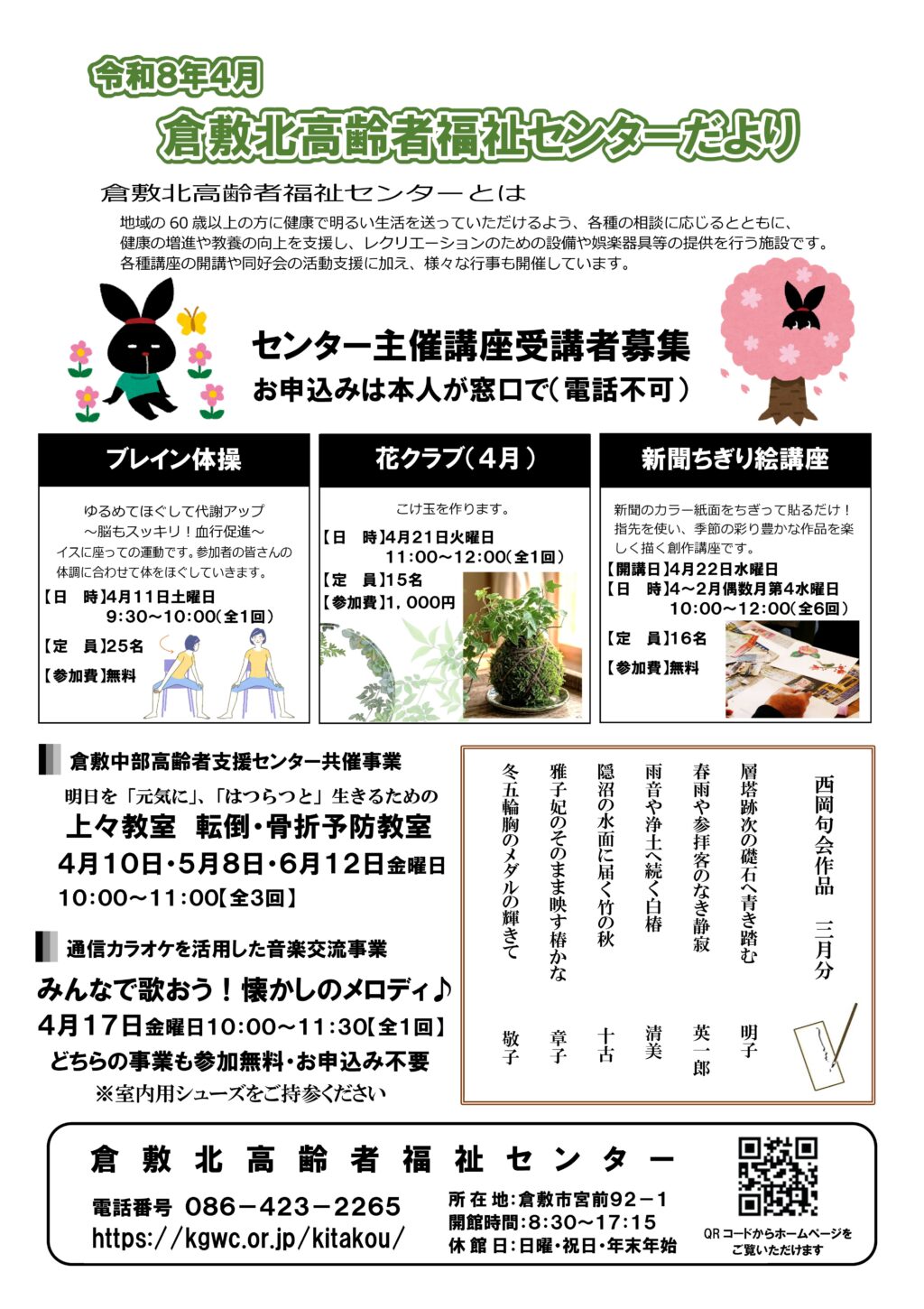 令和8年4月 倉敷北高齢者福祉センターだより