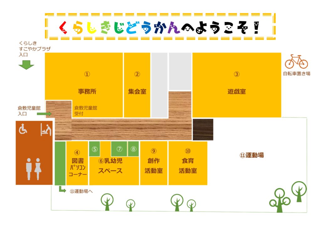 ①事務室 最初に受付をしてね。おもちゃの貸し出しや行事の受付もしています。