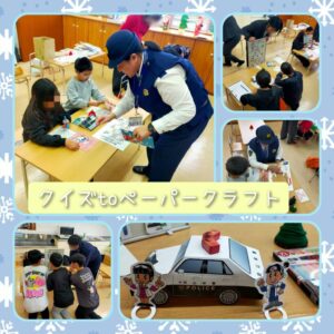 岡山県警察本部倉敷少年サポートセンターの方が来てくださり、いろいろなためになるクイズとパトカーのペーパークラフトを用意してくださいました!