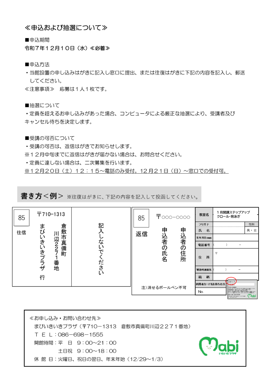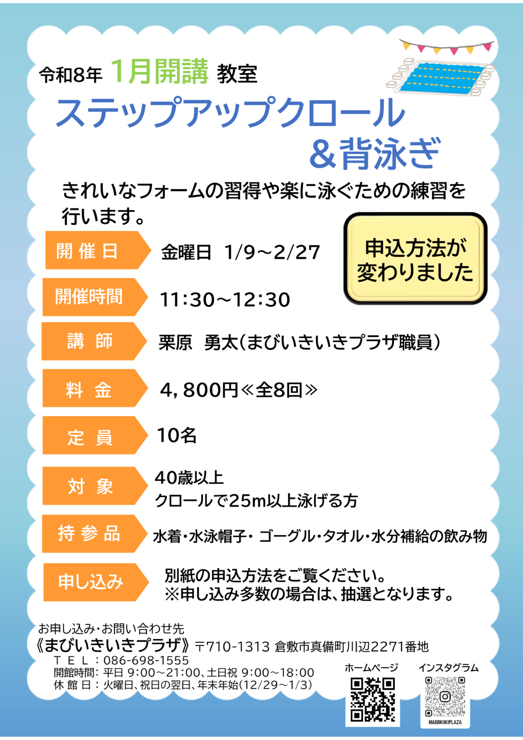 令和8年1月開講 ステップアップクロール&背泳ぎ教室のお知らせ