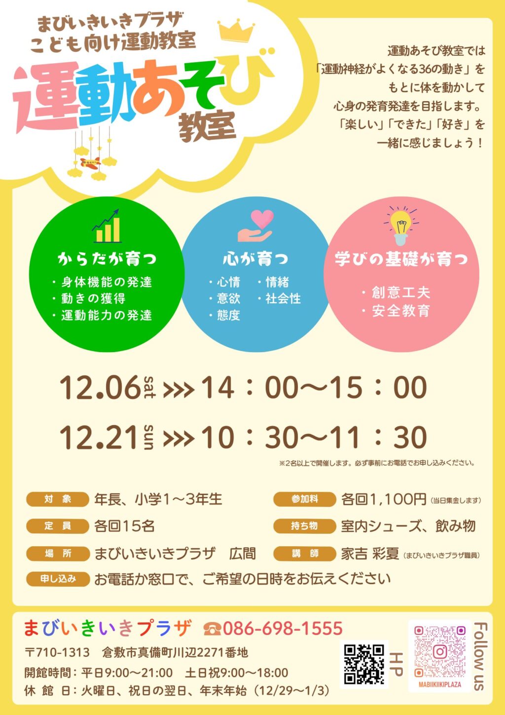 12月開催 運動あそび教室 参加者募集のお知らせ