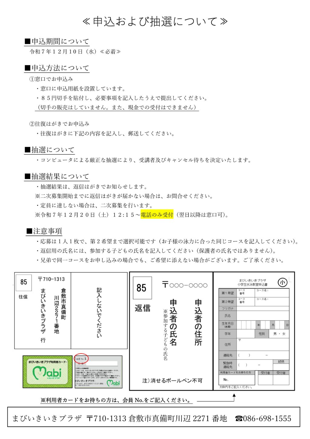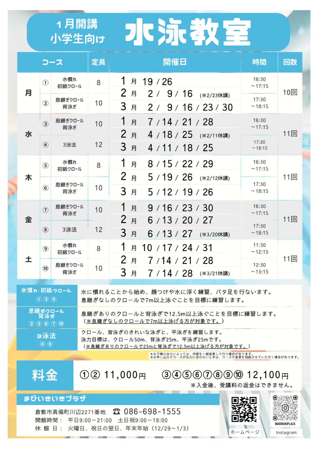 1月開講小学生水泳教室 参加者募集のお知らせ