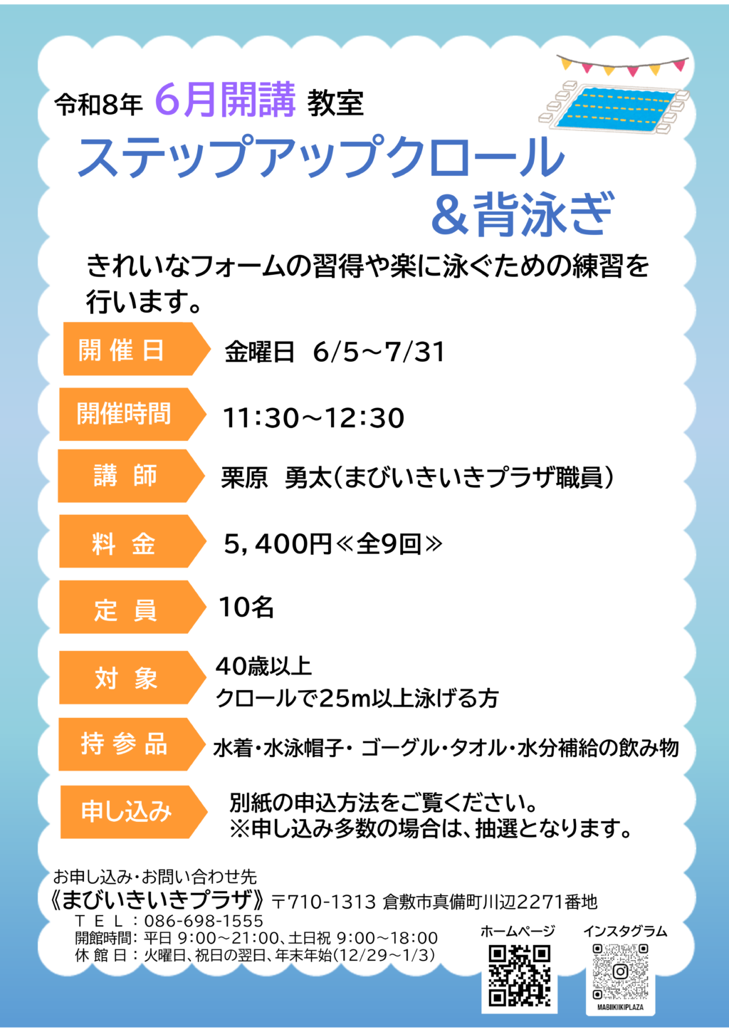 令和8年6月開講 ステップアップクロール&背泳ぎ教室のお知らせ