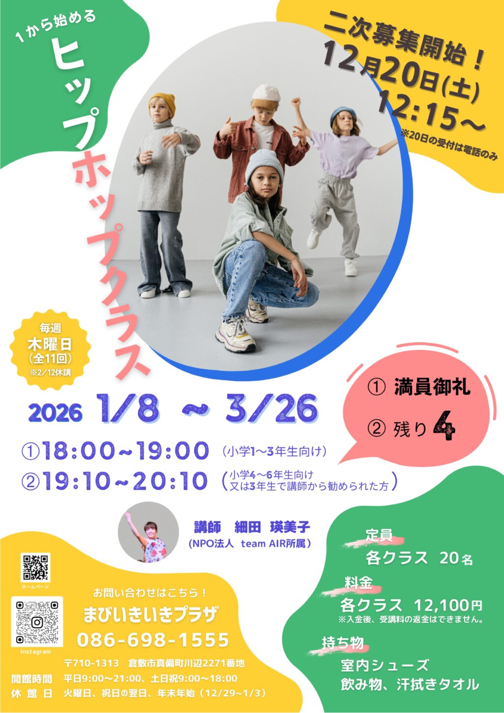 1月開講 小学生ダンス教室 二次募集のお知らせ