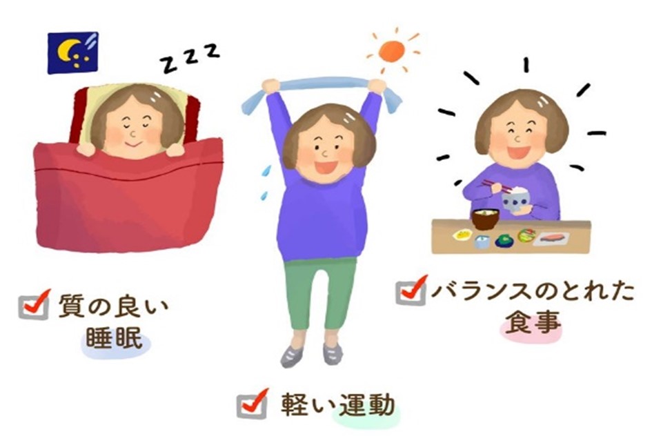 適度な「運動」 ウォーキングなどの軽い運動は、全身の血行を良くしてくれます。まずは「一日30分だけ歩く」「寝る前に軽いストレッチをする」など、できることから始めてみましょう